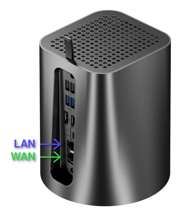 Plug one end of your Ethernet cord into your FreedomBox’s Ethernet WAN port, and plug the other end into your router.