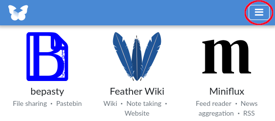 FreedomBox’s web interface is responsive. When the display or browser window is very narrow, menu options may be hidden.