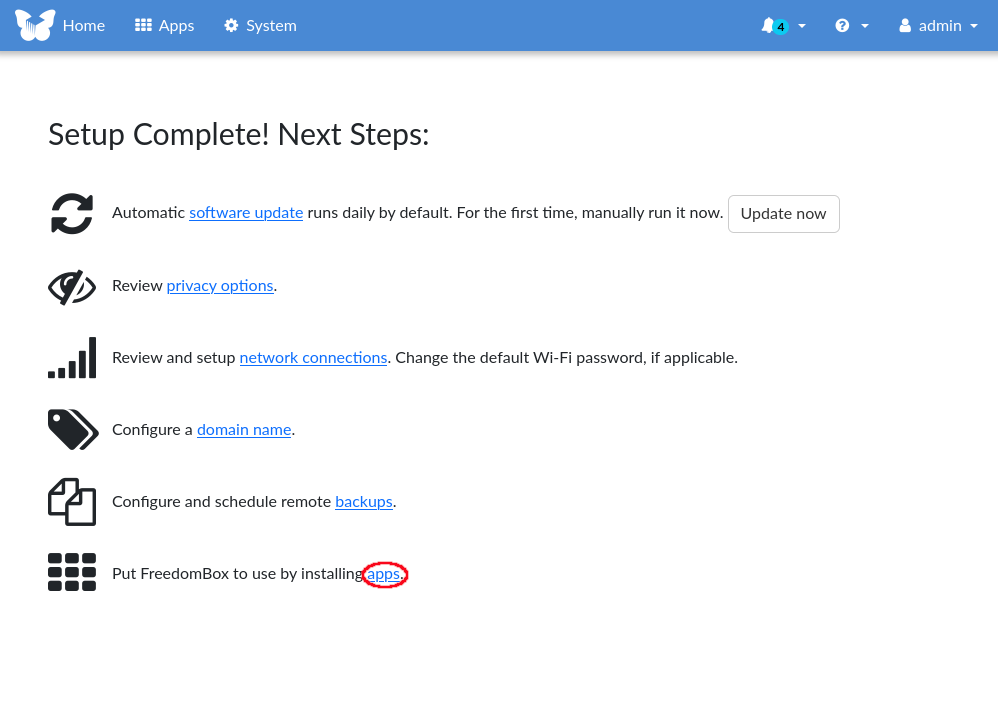 1. For more detailed instructions and translations of this page, see the Quick Start page from FreedomBox documentation.